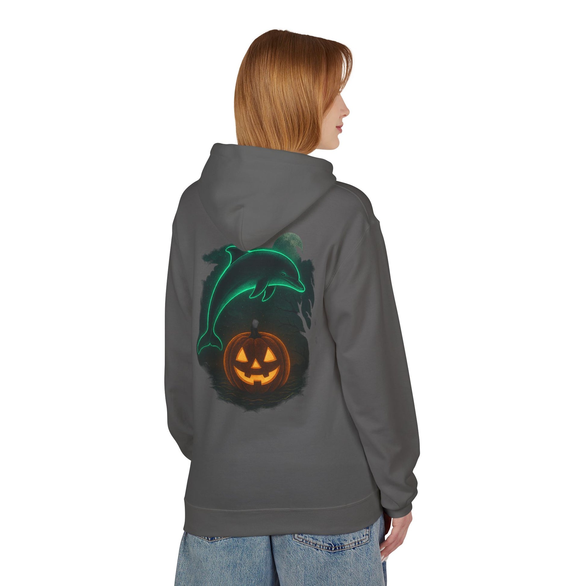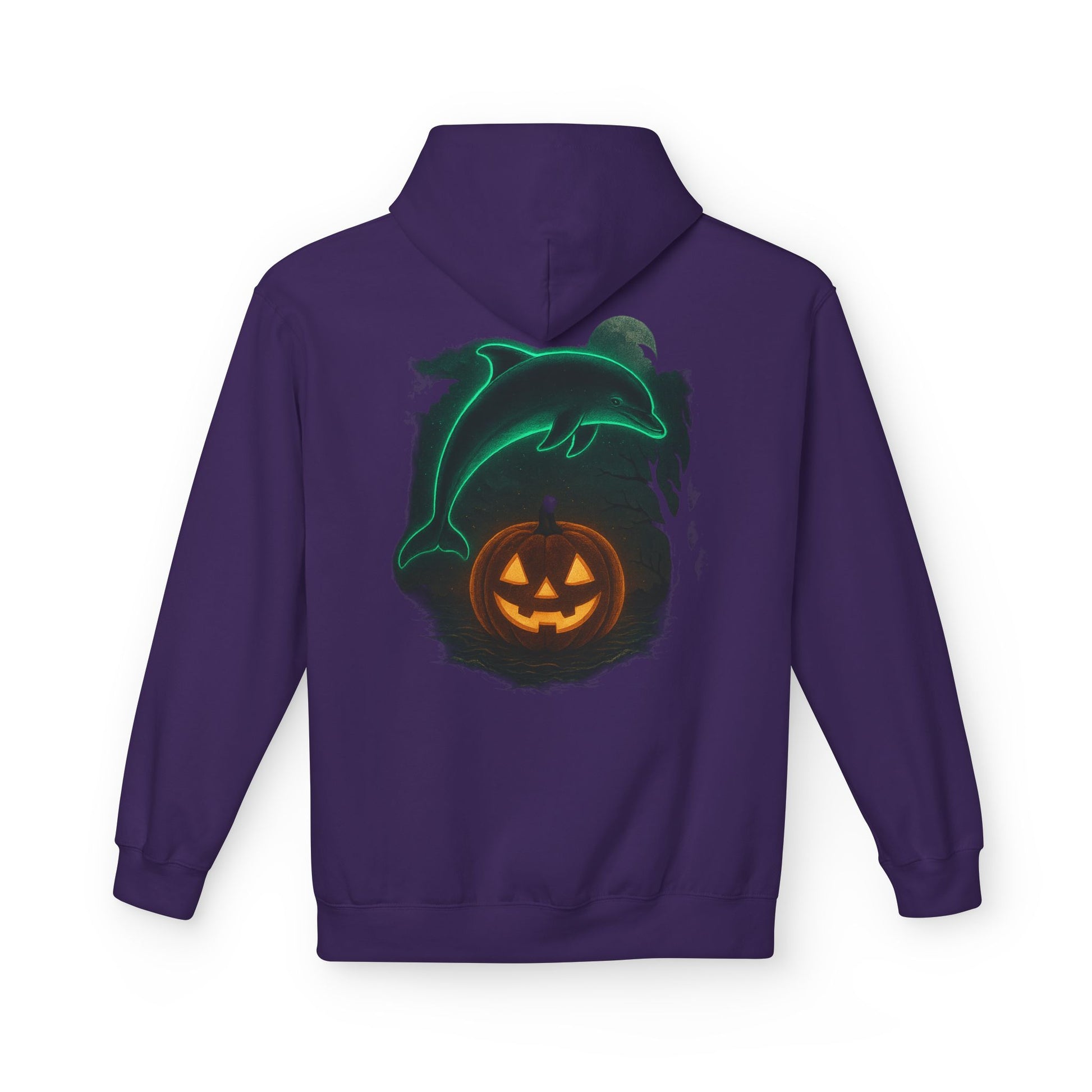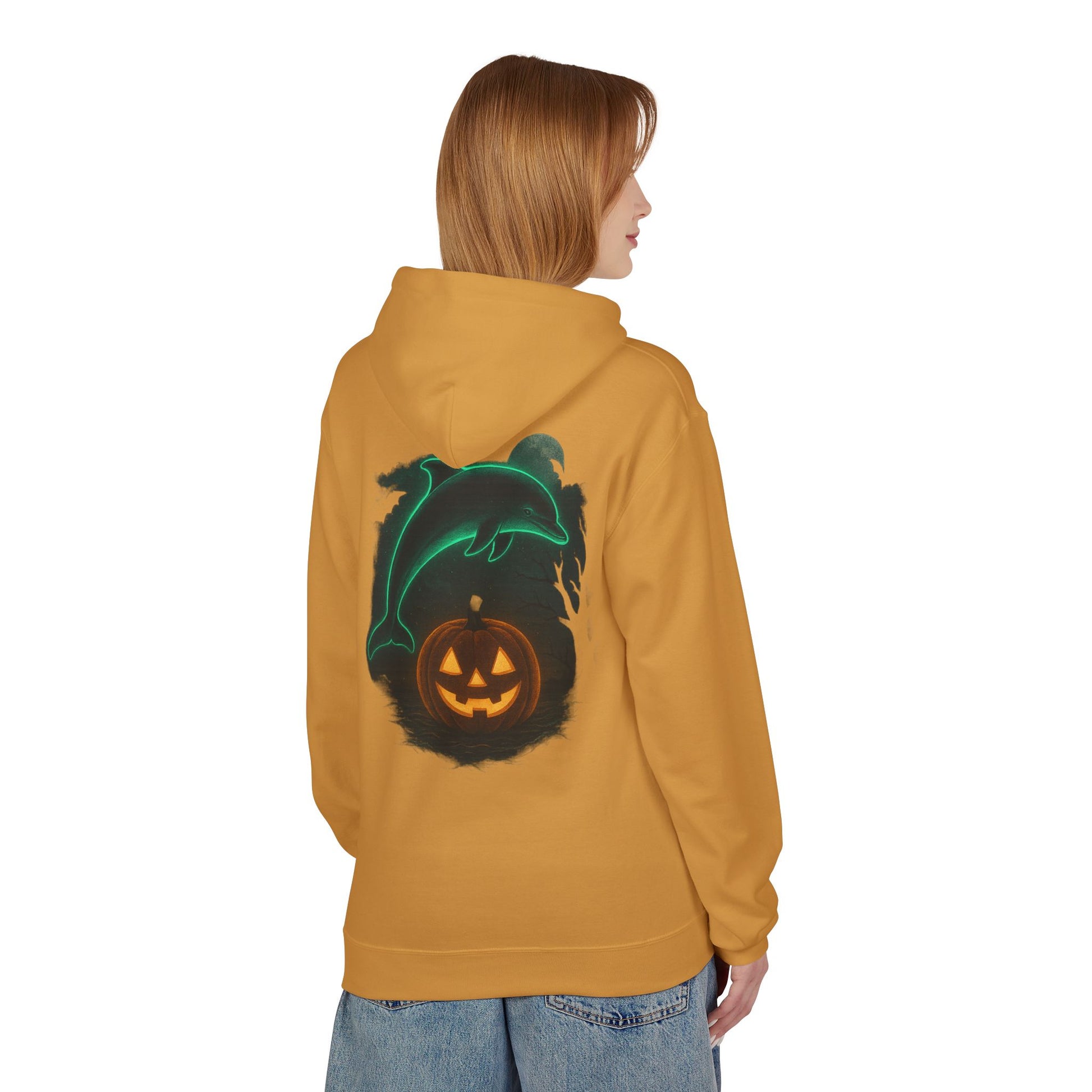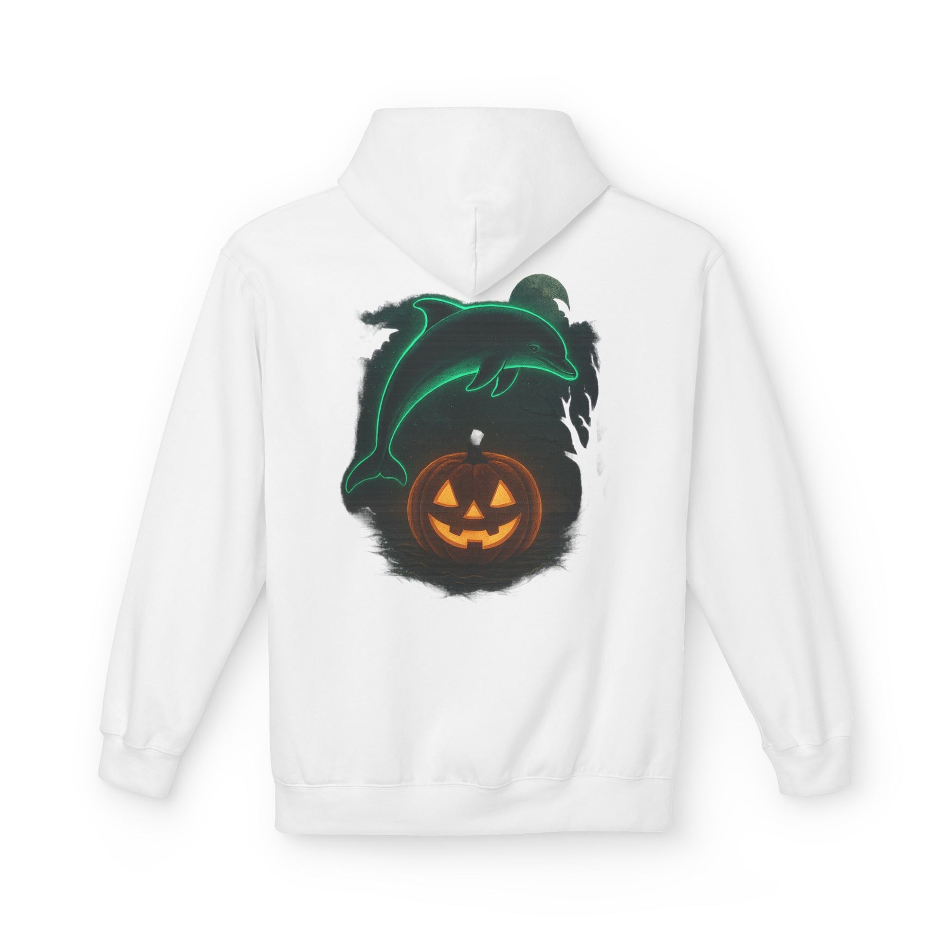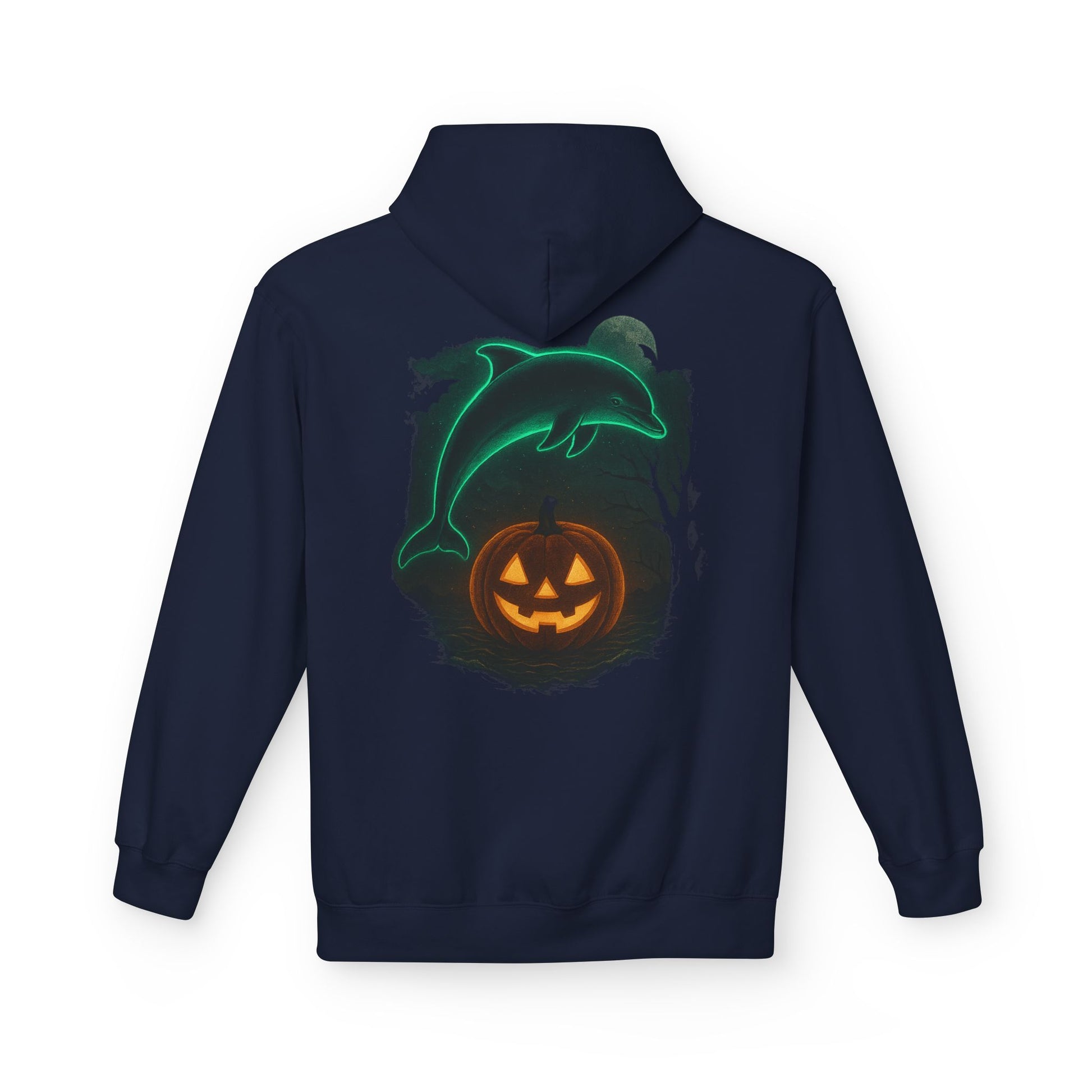 Make a splash this spooky season with the Lucky the Dolphin Halloween Hoodie! π¬β¨ Featuring a glowing neon dolphin leaping over a jack-oβ-lantern pumpkin ππ, this hoodie brings together ocean vibes and Halloween chills in one bold design.