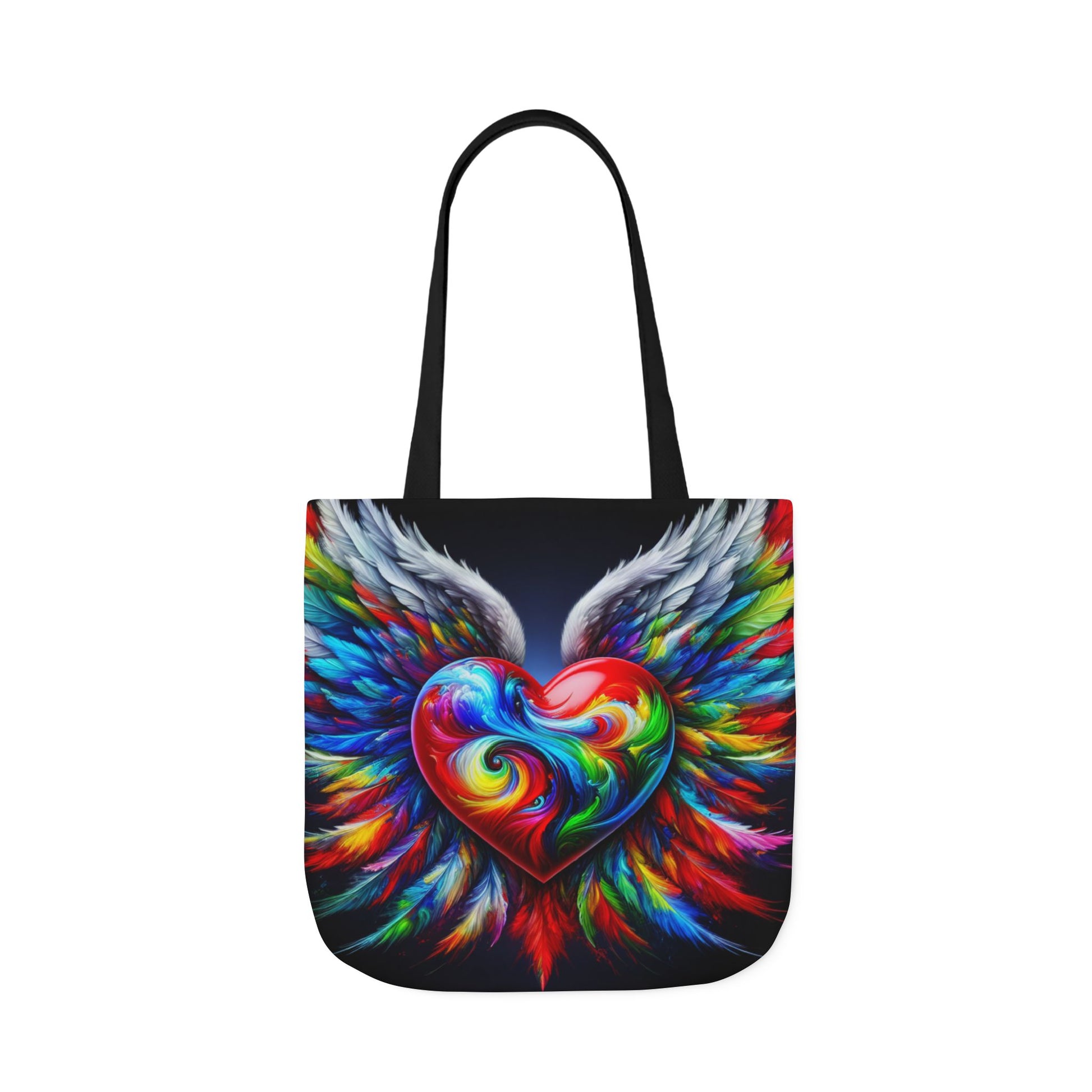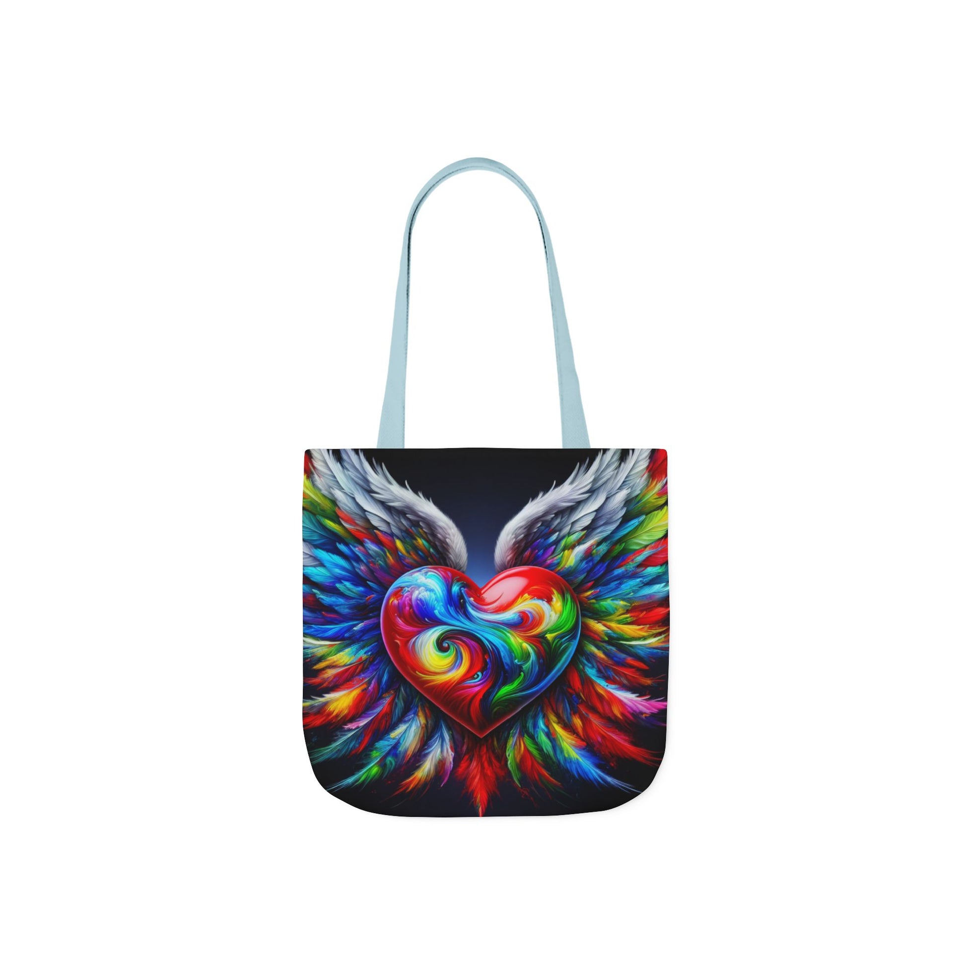 Colorful Heart Wings Canvas Tote Bag - Vibrant 5-Color Straps