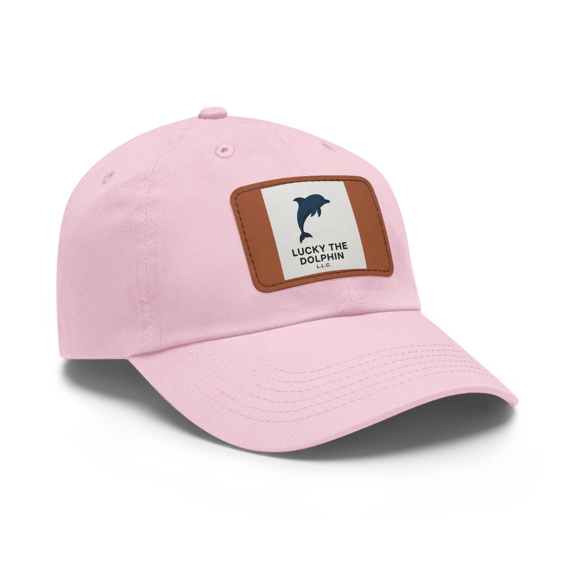 Level up your casual look with the Lucky the Dolphin LLC Signature Logo Dad Hat — the perfect blend of relaxed comfort and timeless style. Crafted from ultra-soft, durable chino twill, this hat delivers all-day comfort while adding a cool, vintage touch to any outfit. Featuring decorative stitching around a premium faux leather patch, it offers a unique, handcrafted feel that stands out from the ordinary.