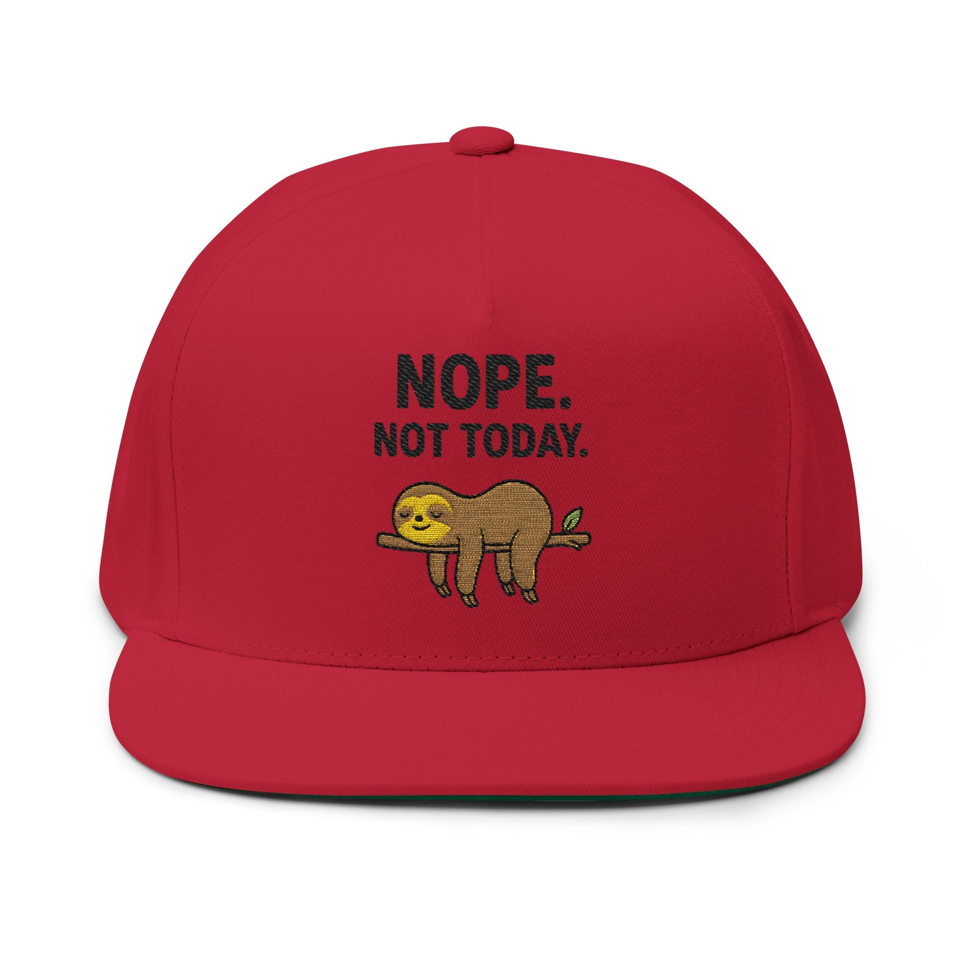 Embrace ultimate chill vibes with our Nope. Not Today. Sloth Cap 🦥! Perfect for those days when relaxation is the plan, this flat bill cap features an adorable sloth snoozing on a branch, paired with the playful "Nope. Not Today." embroidery. Its structured, high-profile design gives a classic look, while the whimsical sloth motif adds personality and charm.