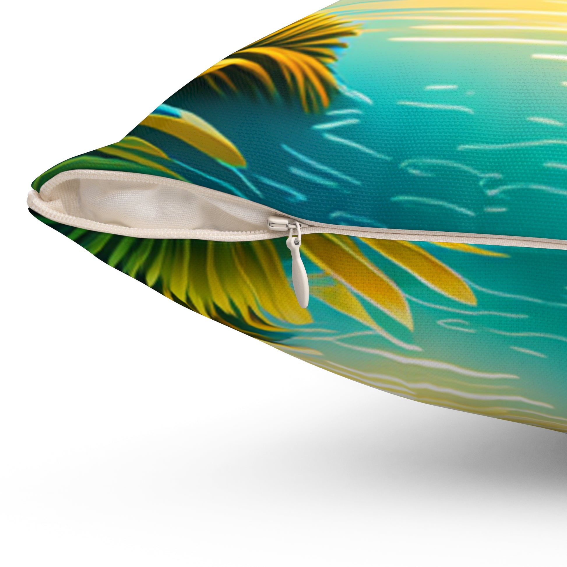 Spun Polyester Square Pillow (Dolphin Palm Tree)