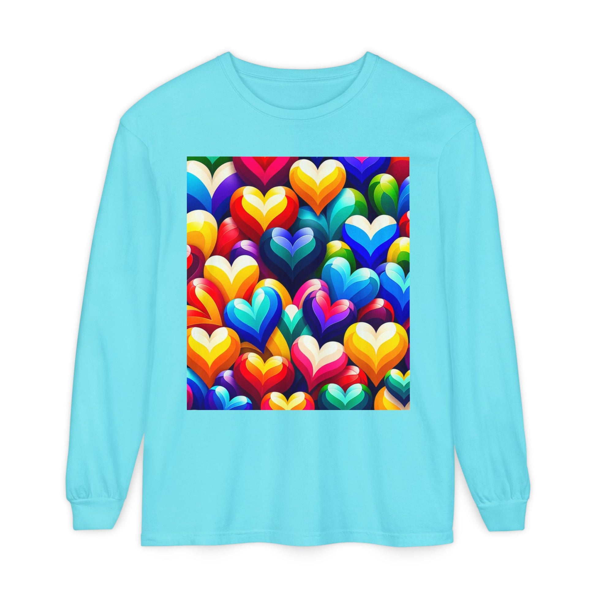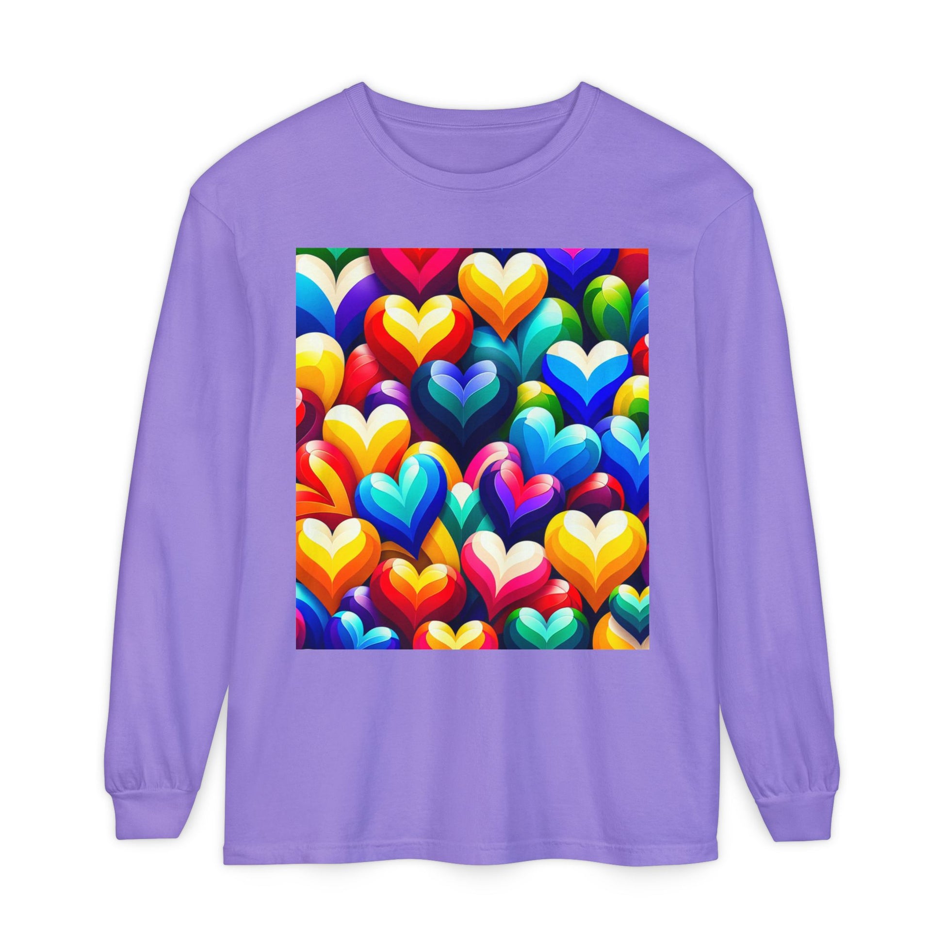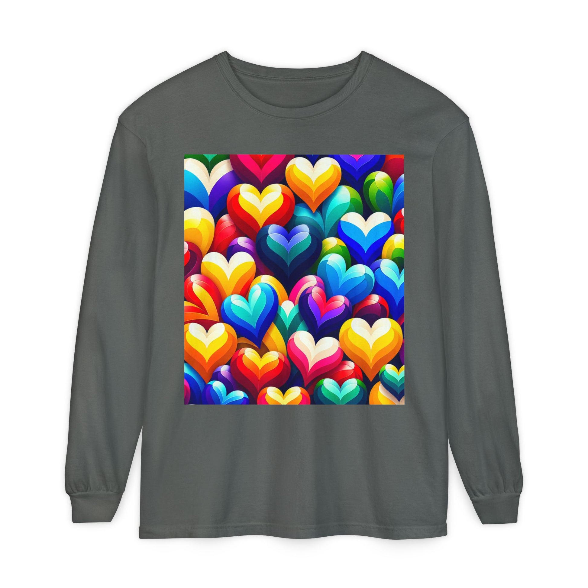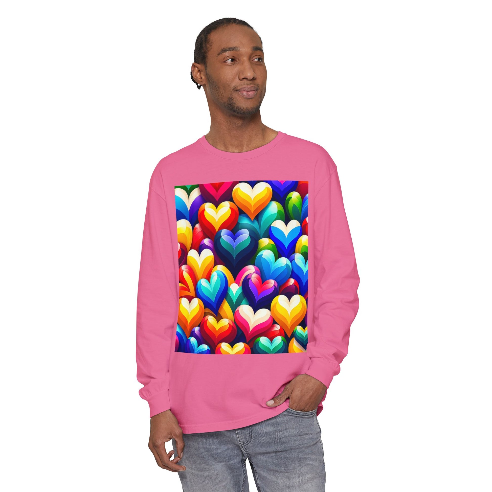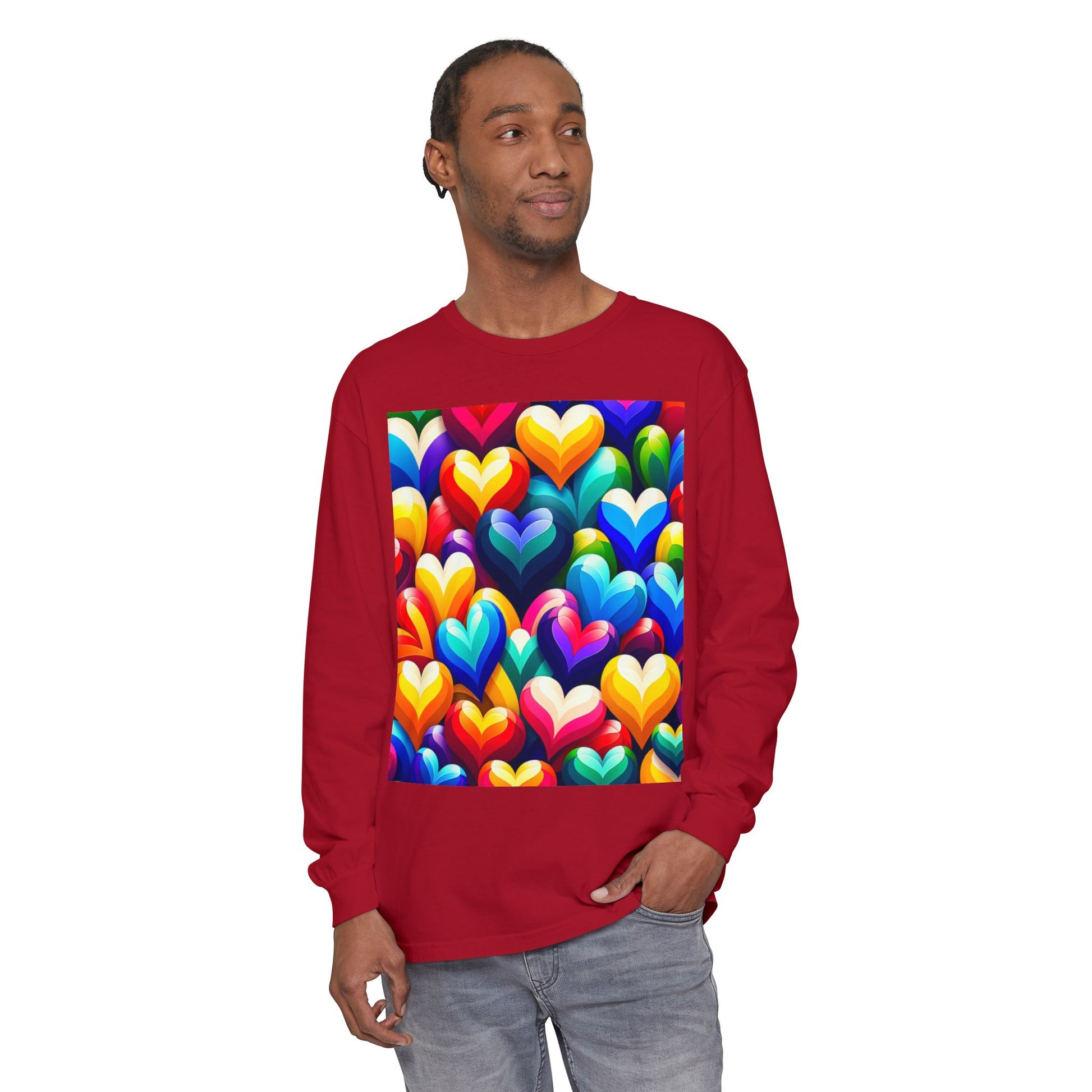 Unisex Garment-dyed Long Sleeve T-Shirt (Colorful Hearts)