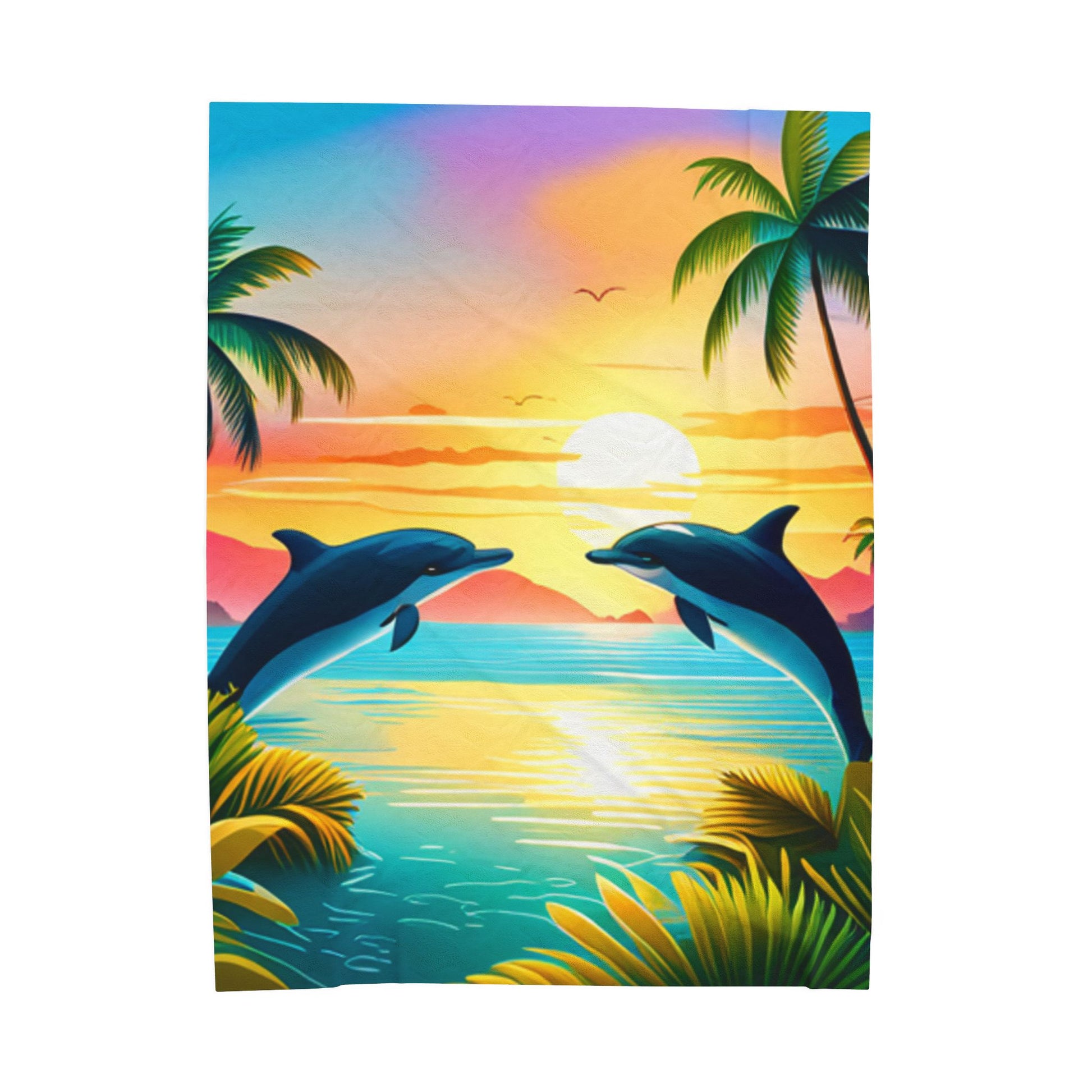 Velveteen Plush Blanket (Dolphin Palm Tree)