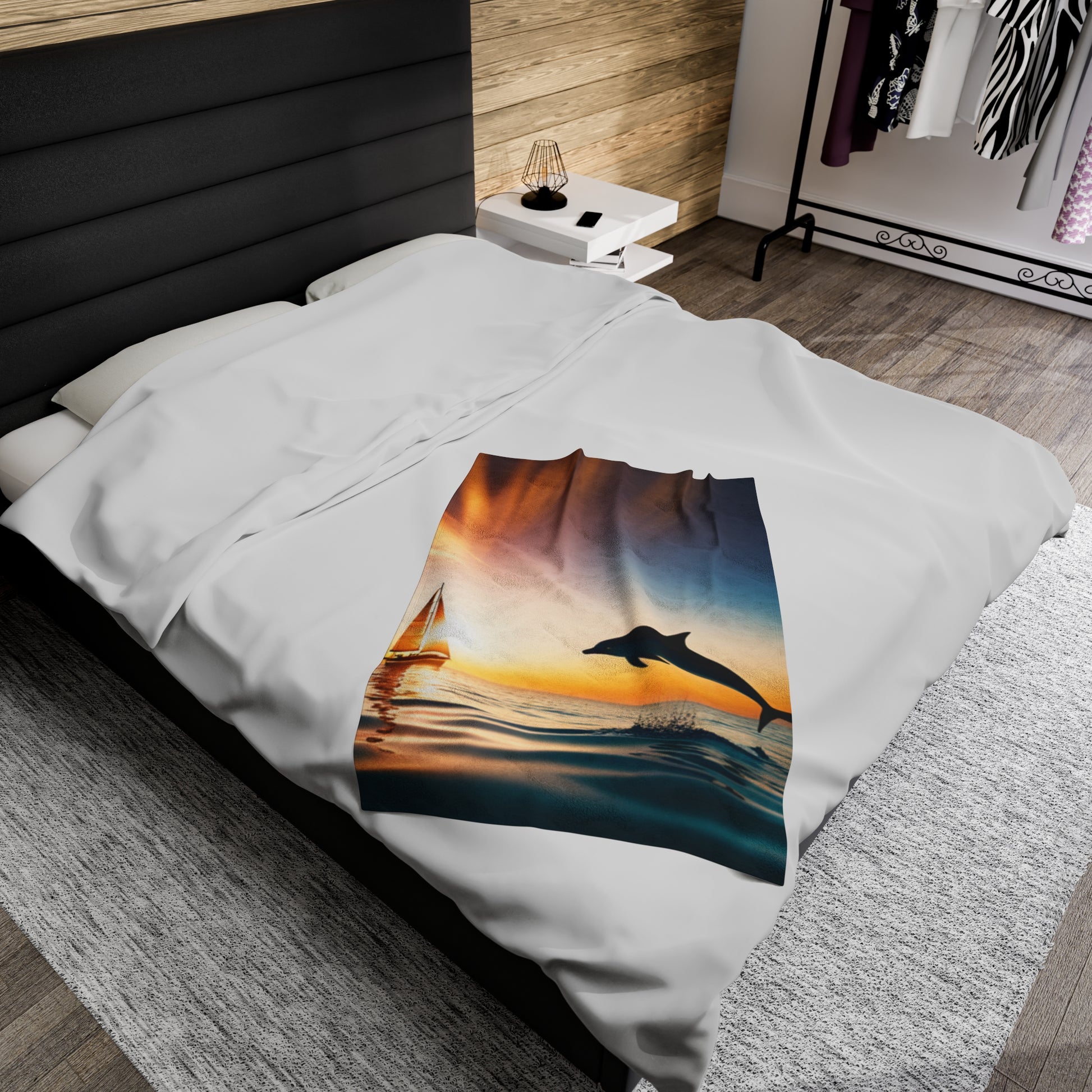 Velveteen Plush Blanket (Dolphin Sailboat)