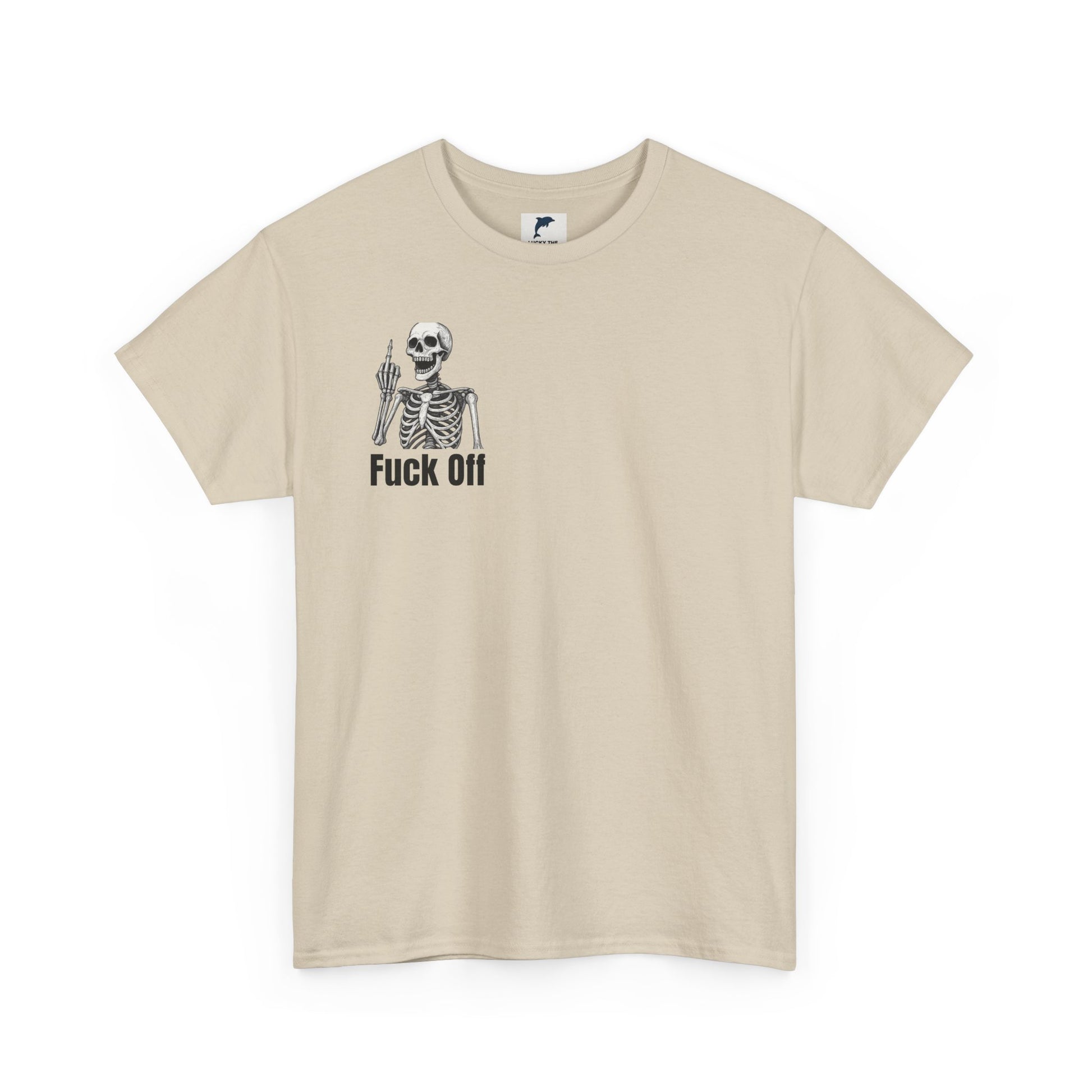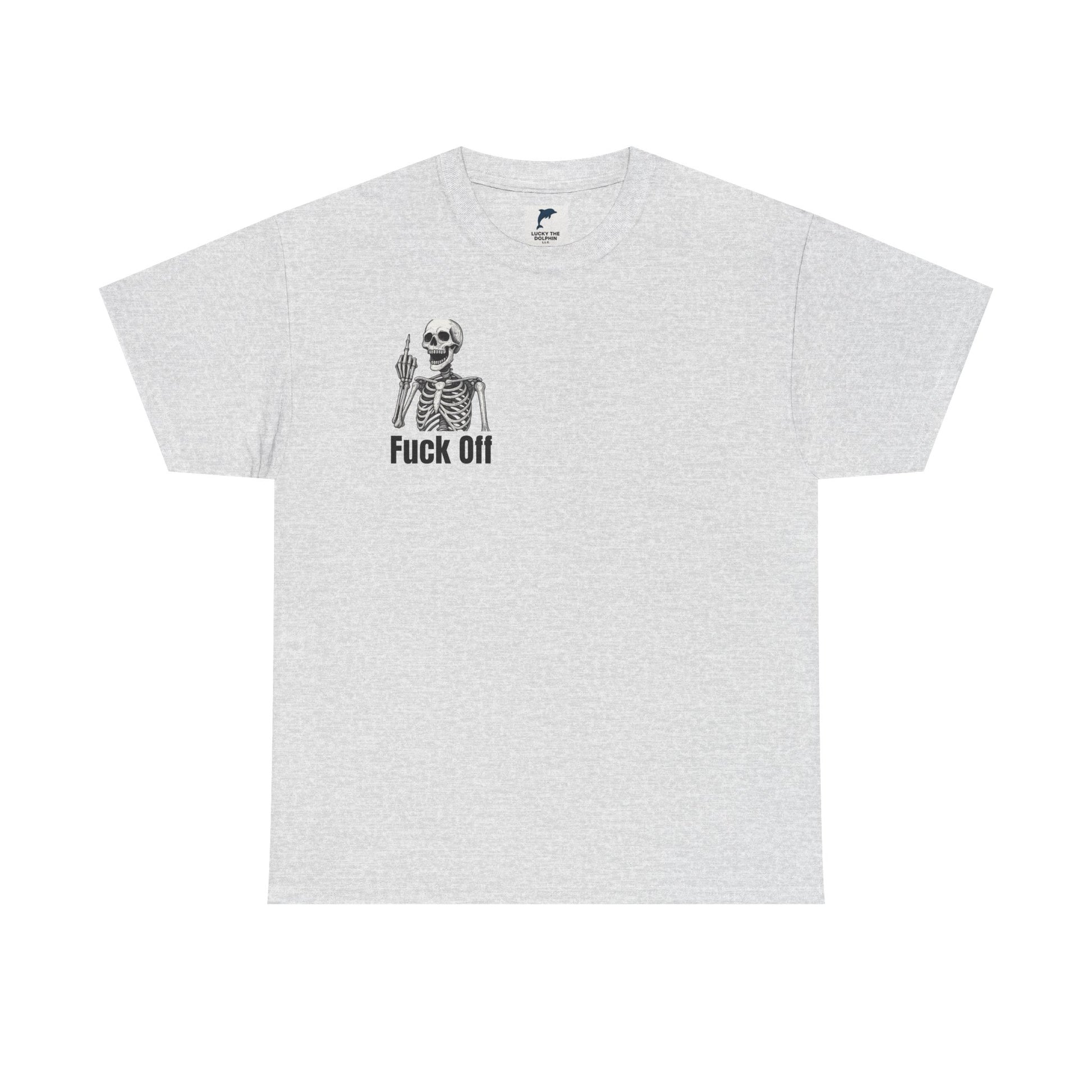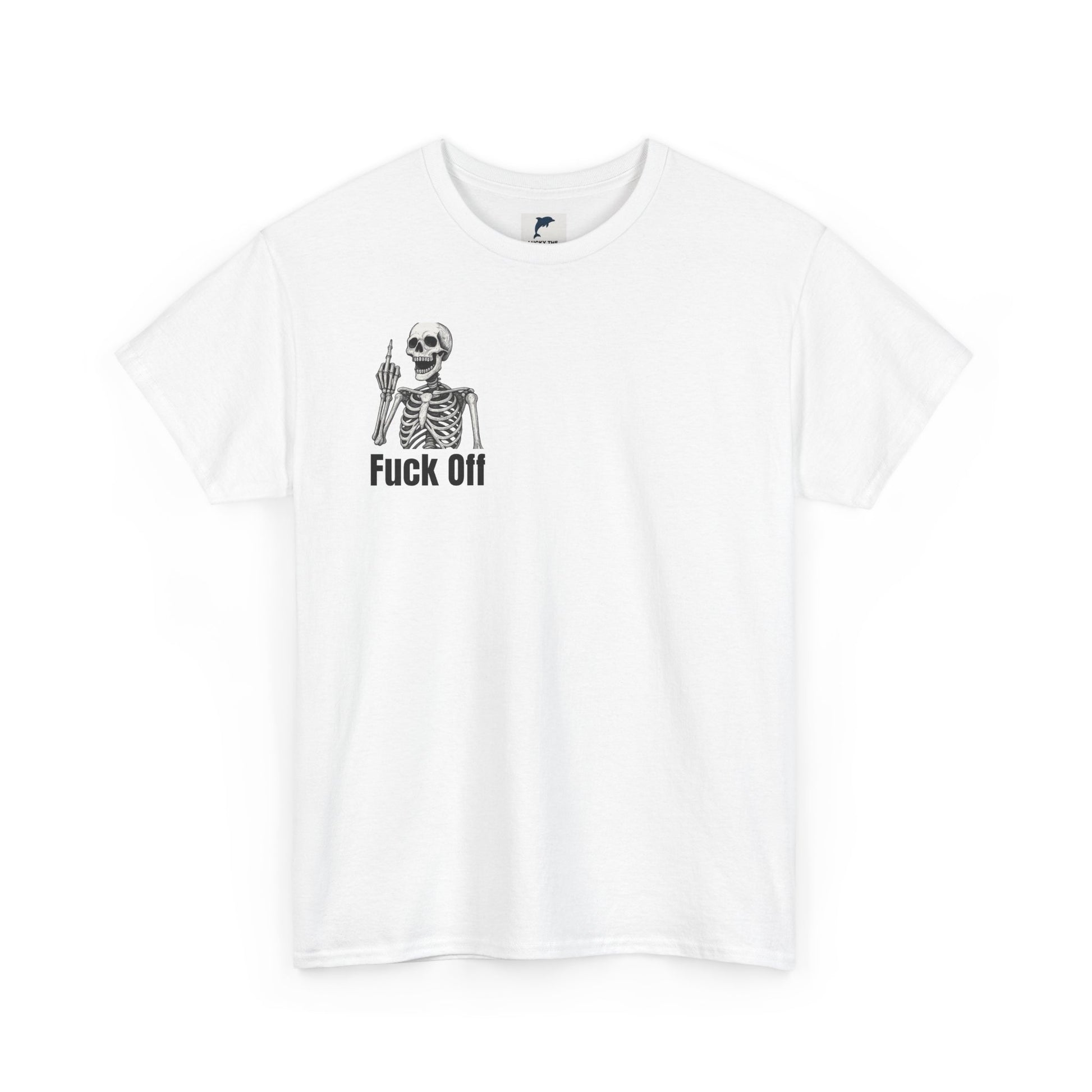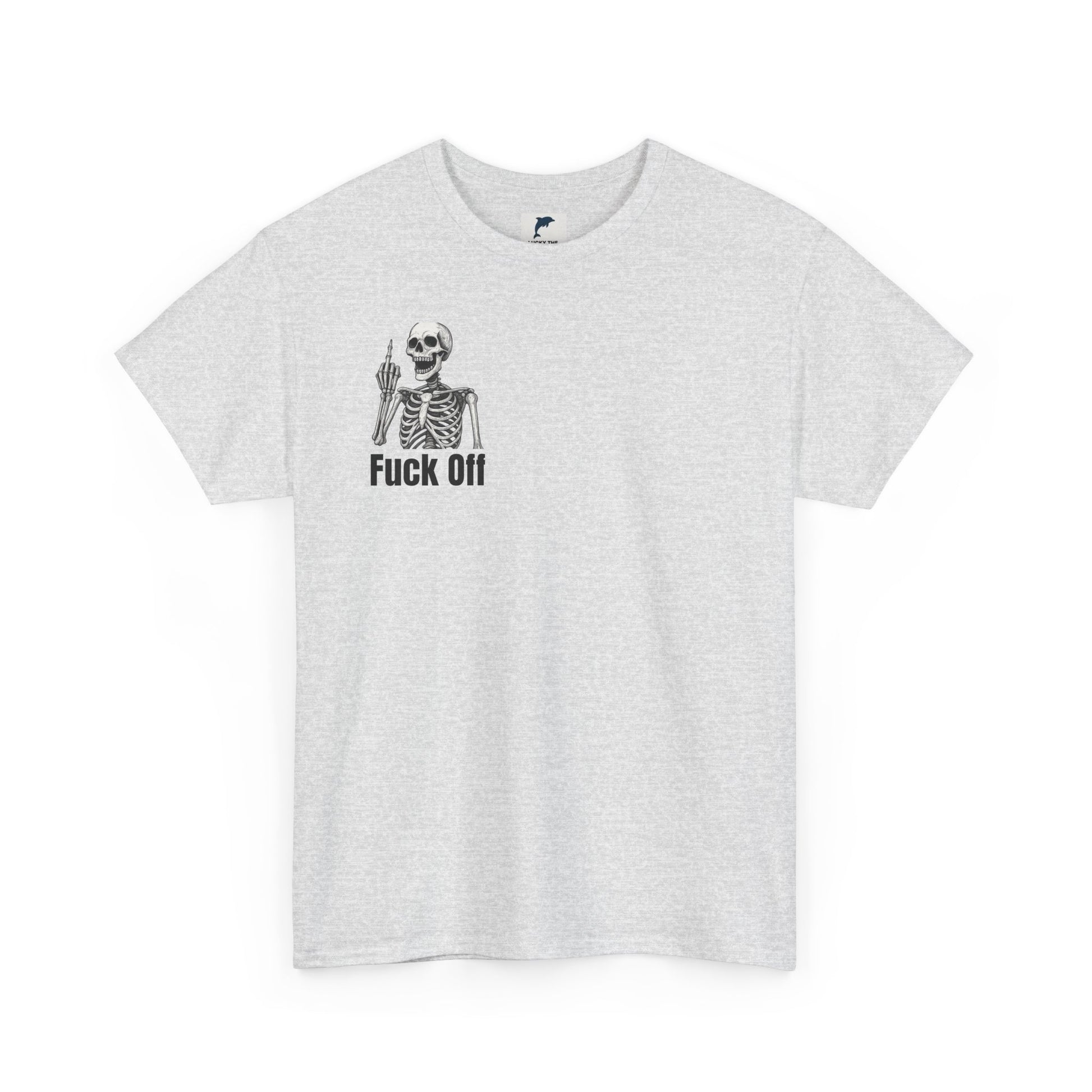 Crafted from soft, durable cotton, it feels as good as it looks, whether you’re chilling with friends, hitting the streets, or just telling the world to back off in style. The edgy skeleton flipping the bird in the corner, paired with that blunt “fuck off” message, guarantees you’ll stand out from the crowd.